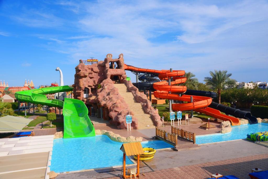 Отель с обслуживанием по системе «все включено» является частью развлекательного комплекса Aqua Park City. На набережной отеля протяженностью 450 метров работают различные кафе и магазины. К услугам гостей 8 бассейнов и 3 детских бассейна с 64 разнообразными водными горками, а также спа-центр с полным спектром услуг. Кроме того, в отеле Aqua Blu можно посетить частный пляж.
